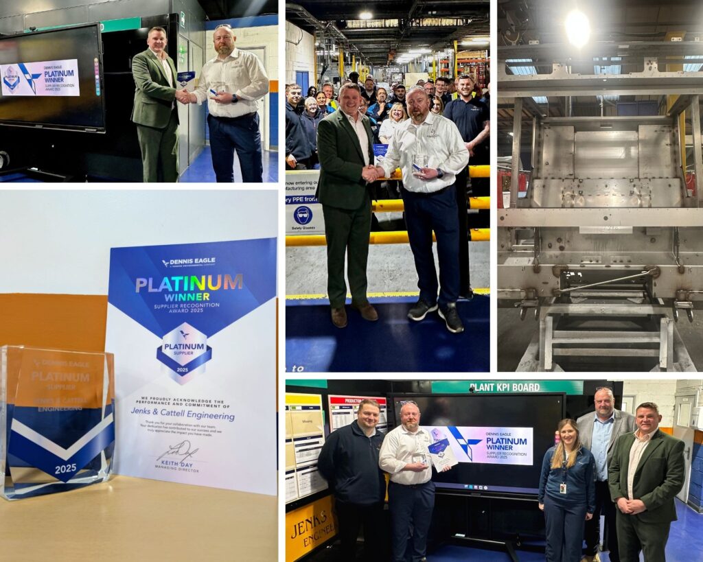 Jenks & Cattell Engineering is proud to receive Platinum Supplier Recognition from Dennis Eagle, one of the most prestigious bin lorry manufacturers in the world. This is Dennis Eagle’s highest supplier award. Only 35 suppliers out of their supply base of 205 achieved Platinum, placing Jenks & Cattell Engineering in the elite 20% of top performing partners recognised for excellence in quality, reliability, and service.